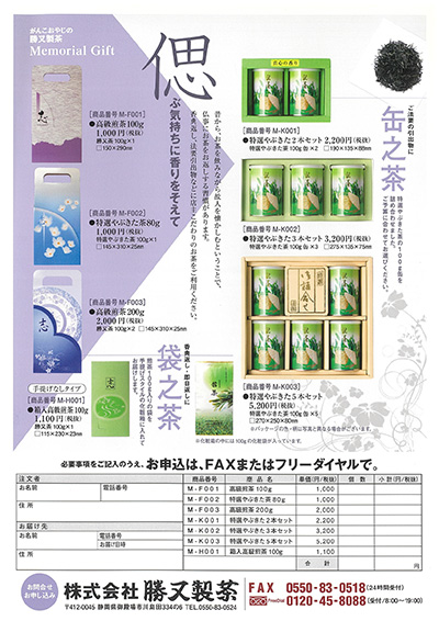 勝又製茶では、人気商品や旬のものなど、もらって嬉しい・贈って嬉しいギフトを厳選して取り揃えております。